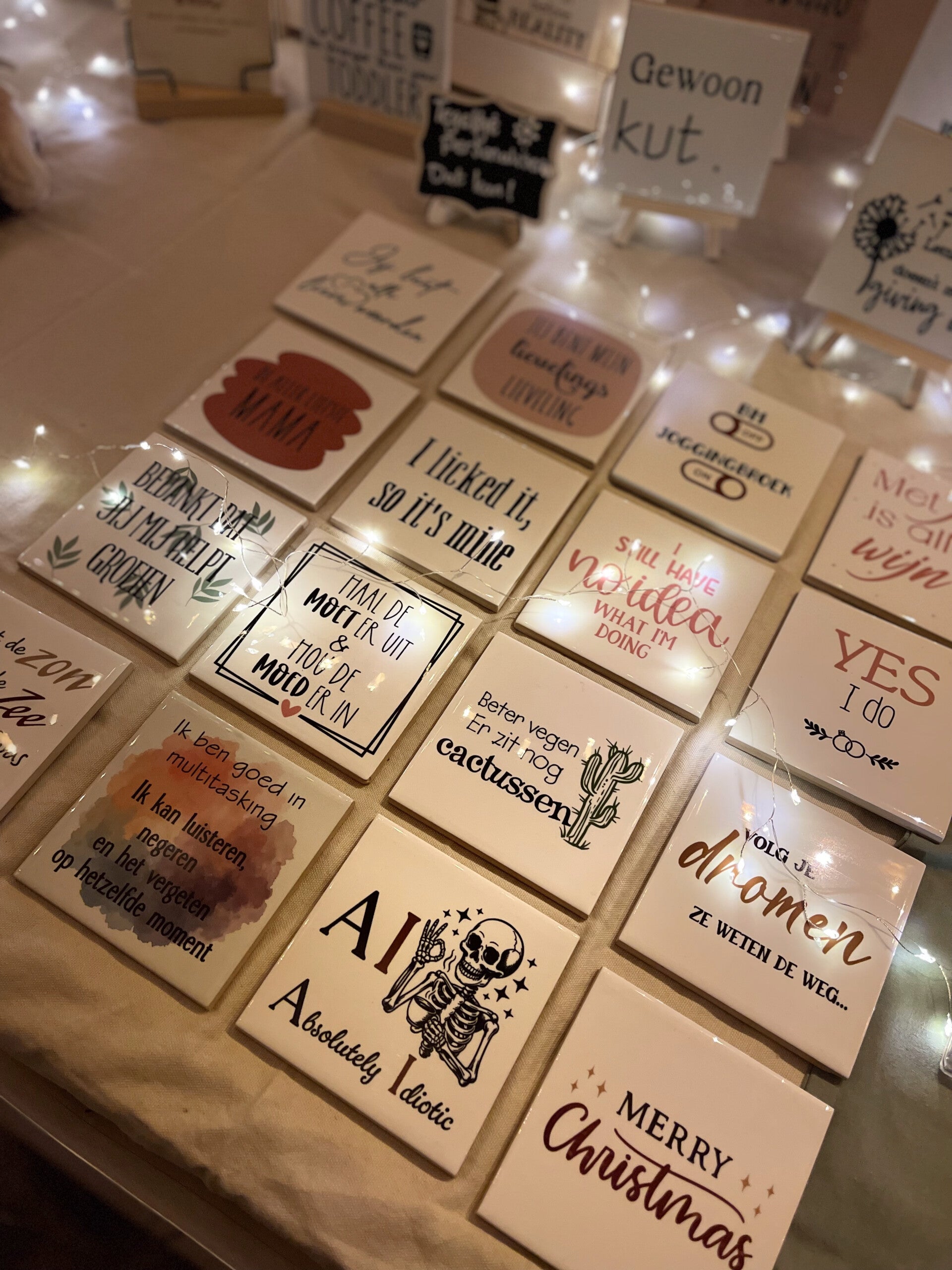 Je kunt kiezen uit verschillende teksten, maar ook een eigen tekst op een tegeltje laten maken. Zo creëer je een uniek en persoonlijk item dat perfect past bij degene voor wie het bedoeld is.