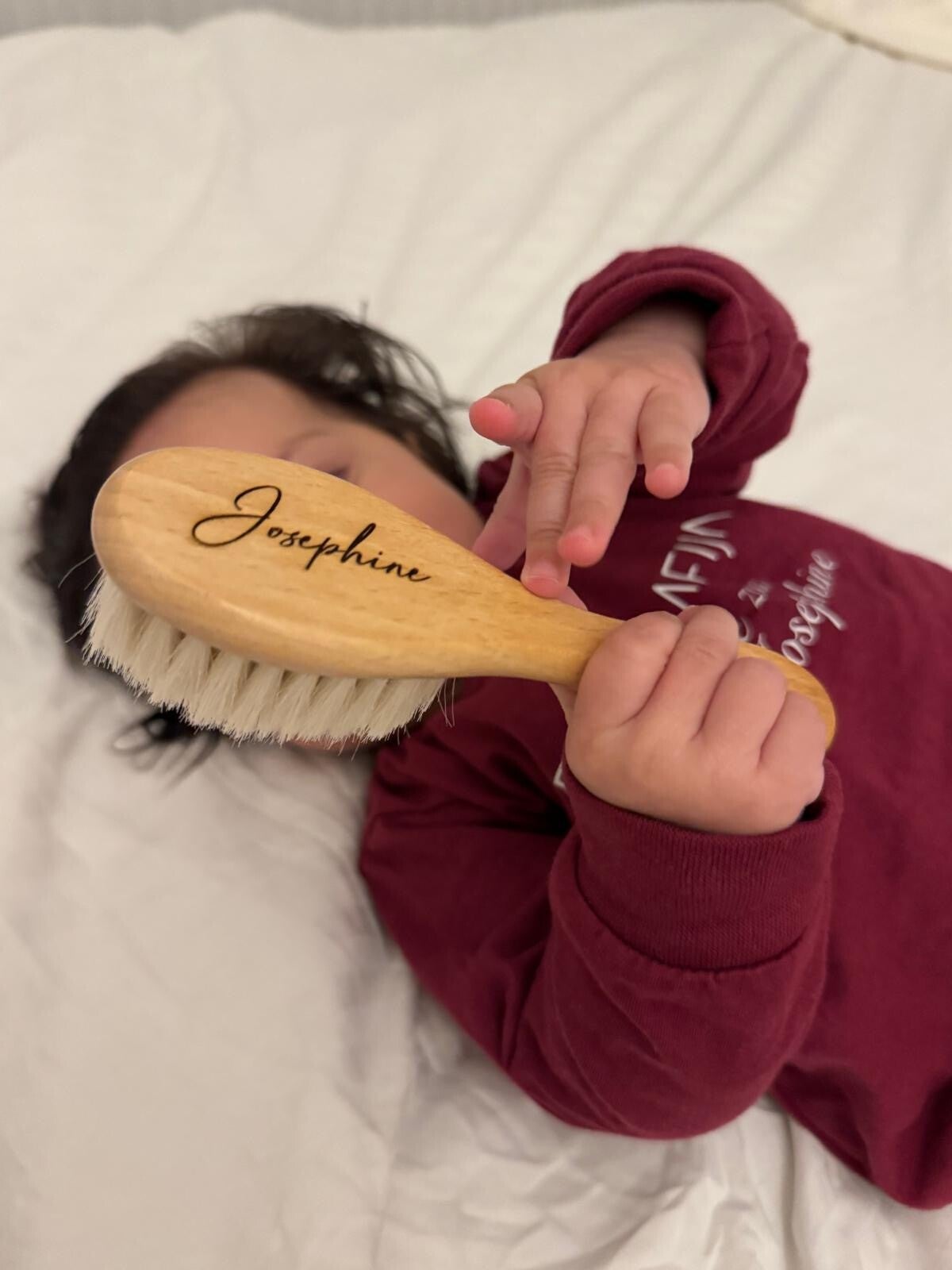 Maar mijn aller grootste trots is toch wel mijn borduurmachine. Borduren is zo mooi, stijlvol en duurzaam. Het blijft lang mooi en je kan eindeloos producten borduren. In mijn assortiment zitten bijvoorbeeld badjasjes, badcapes, poncho's, slabbetjes, speenkoorden en op dit alles borduur ik met liefde de naam van het kindje.