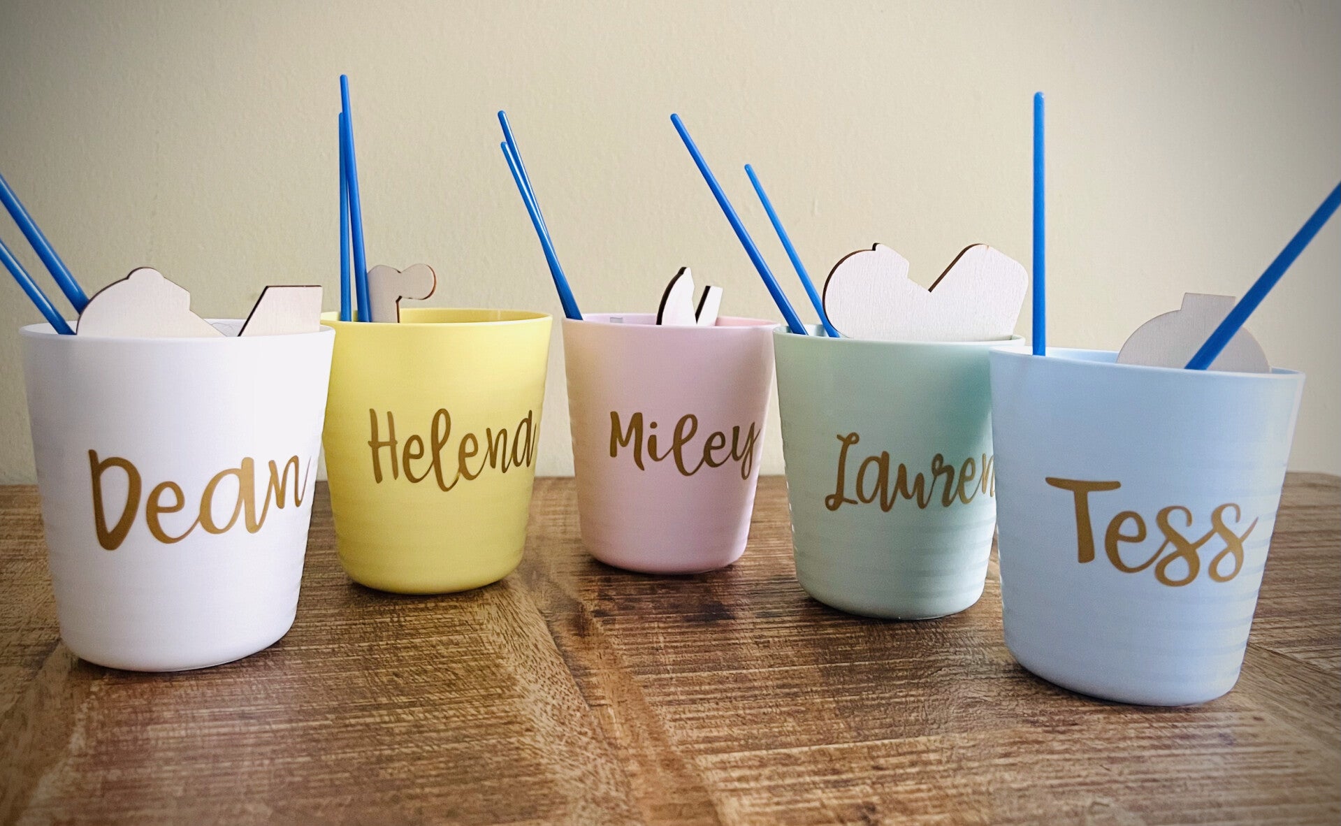 Deze traktatie bestaat uit een beker met op elke beker een naam van een kindje uit de klas, een kwast, verf in 3 kleuren en een houten figuur. Bij deze specifiek een bouw voertuig zoals een kiepwagen, graafmachine of een traktor.